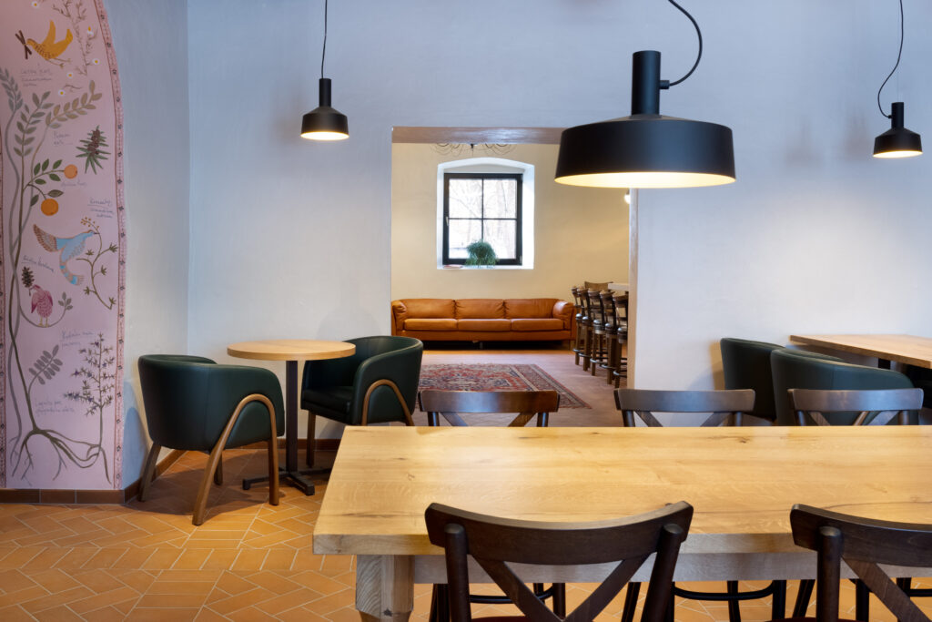 Külastuskeskuse esimesel korrusel asub TOHI džnni tootmine ning mõnus “TOHI Restosaal” pika laua ja baariga. Suvel pääseb otse aeda, mööda voolava Keila jõe kaldale või niisama terrassile aperitiivi nautima värskes õhus.
